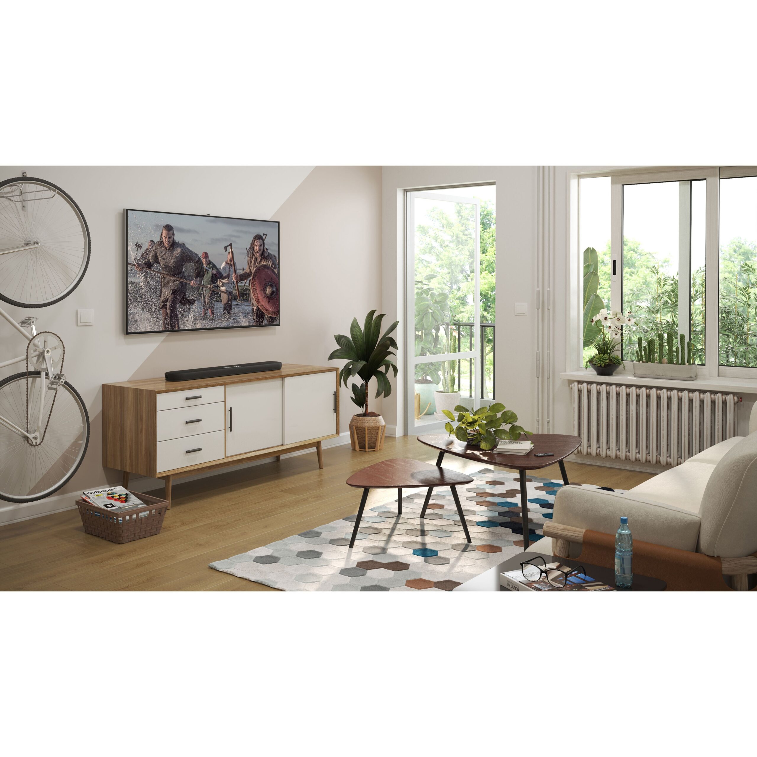 دارای سوراخهایی برای نصب آسان روی دیوار و ژیروسکوپ داخلی برای بهینهسازی صدا بسته به اینکه ساندبار به صورت عمودی یا صاف قرار گرفته باشد.